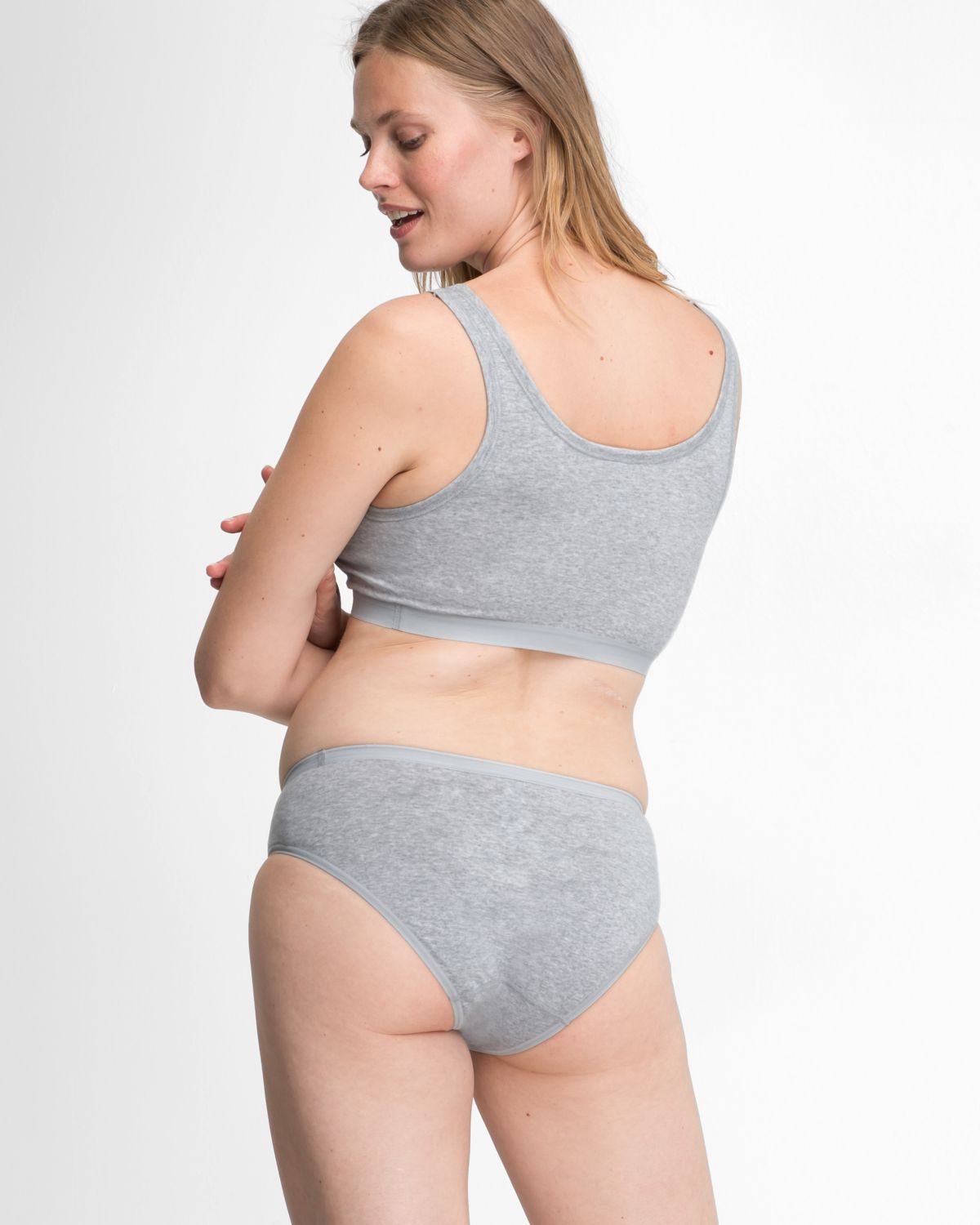 Midislip in kiesel mélé aus der Serie Bio Cotton plus, flach auf einer Oberfläche liegend.