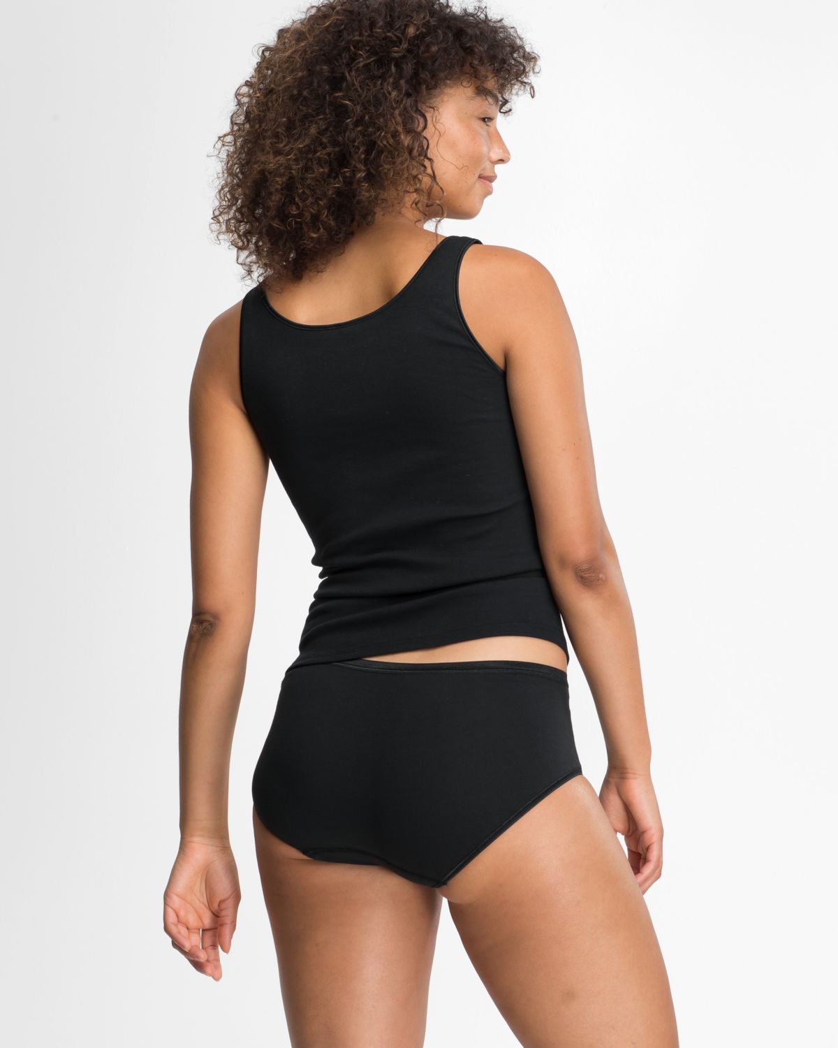 Midislip in schwarz aus der Serie Natascha, flach auf einer Oberfläche liegend.