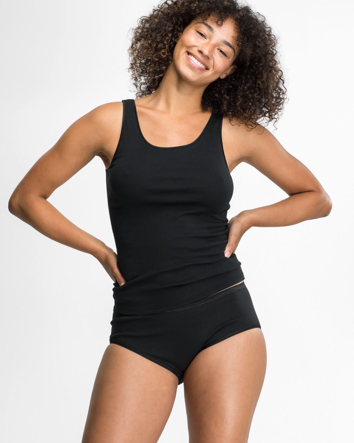 Das Achselhemd glänzt mit feinen Satin-Abschlüssen, optimaler Passform und schlichter Eleganz.