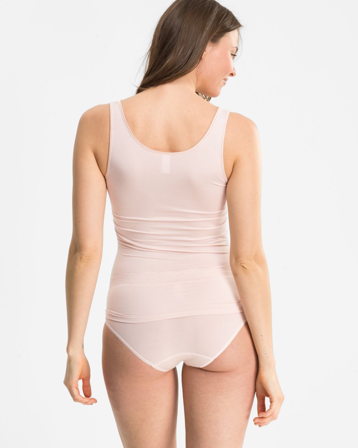 Achselhemd in lychee aus der Serie Sensuelle, flach auf einer Oberfläche liegend.