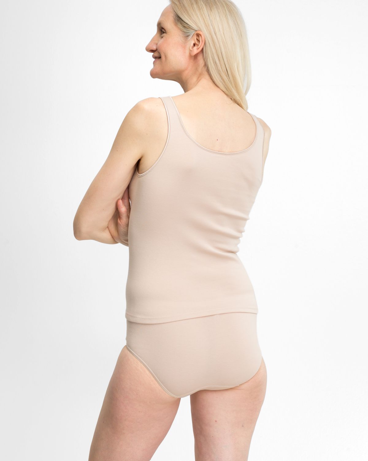 Das Achselhemd aus der Serie Silke aus 100% Baumwolle hat zarte glänzende Abschlüsse an Hals- und Armausschnitt. mehr erfahren