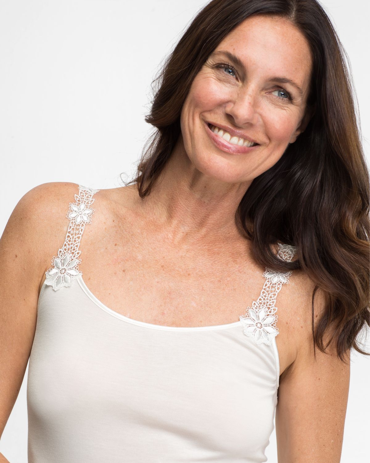 Das Achselhemd verzaubert durch seine floralen Spitzen-Träger und samtweiche Micromodal-Qualität jeden Tag aufs Neue.