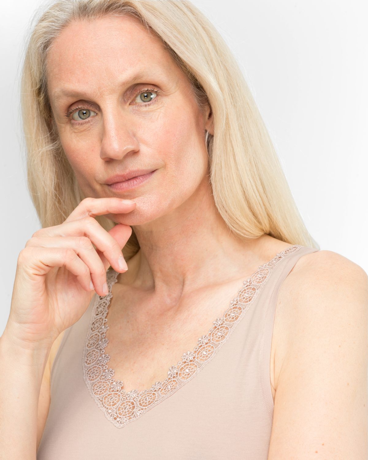 Unser zauberhaftes Achselhemd aus der Serie Silke aus weicher Baumwolle sorgt für das gewisse Extra. Im Sommer eignet es sich auch wunderbar als Top und im Winter darf es unter dem Strickpulli hervorblitzen.