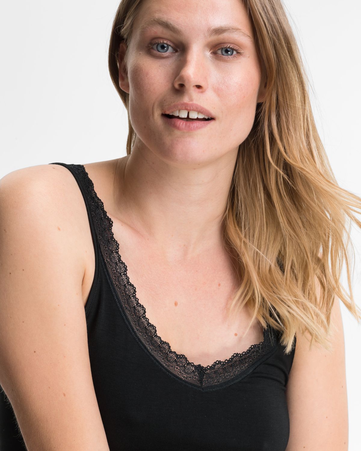 • schmale, hochwertige Spitze am Dekolleté eingesetzt