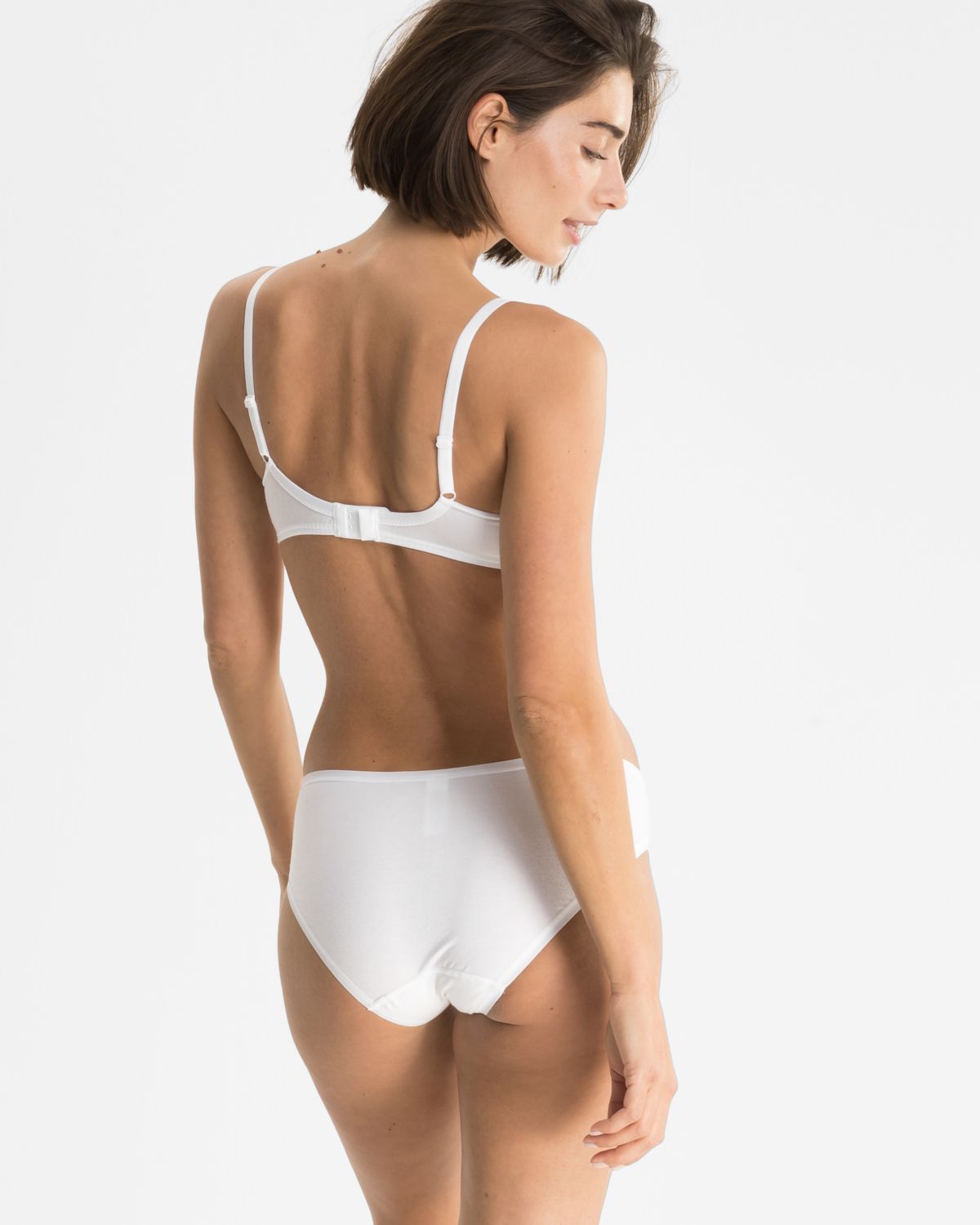 Minislip in weiß aus der Serie Softfeeling, flach auf einer Oberfläche liegend.