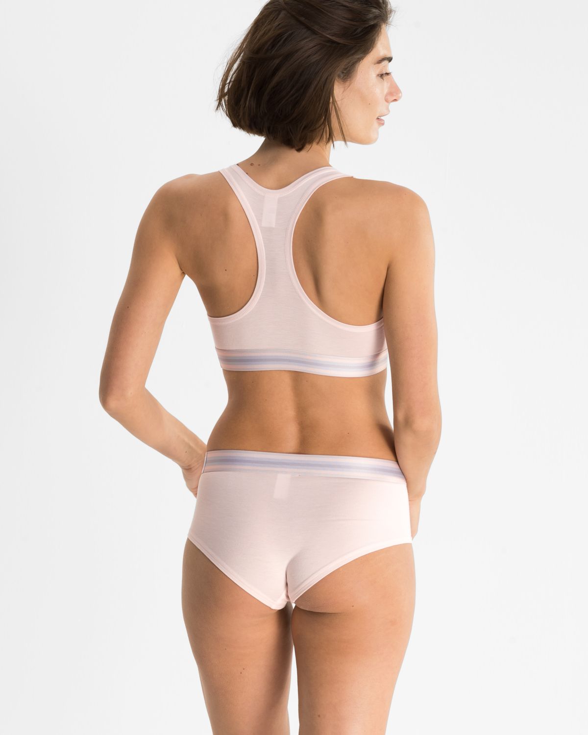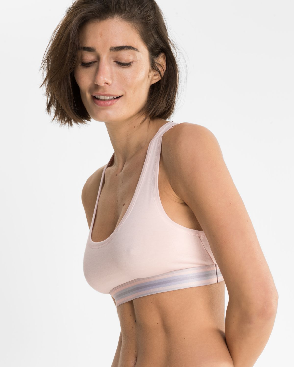 Das sportive Bustier aus feinster Bambus Qualität sitzt angenehm weich auf der Haut und ist mit dem farbig gestreiften Webbund ein absolutes Must-Have.