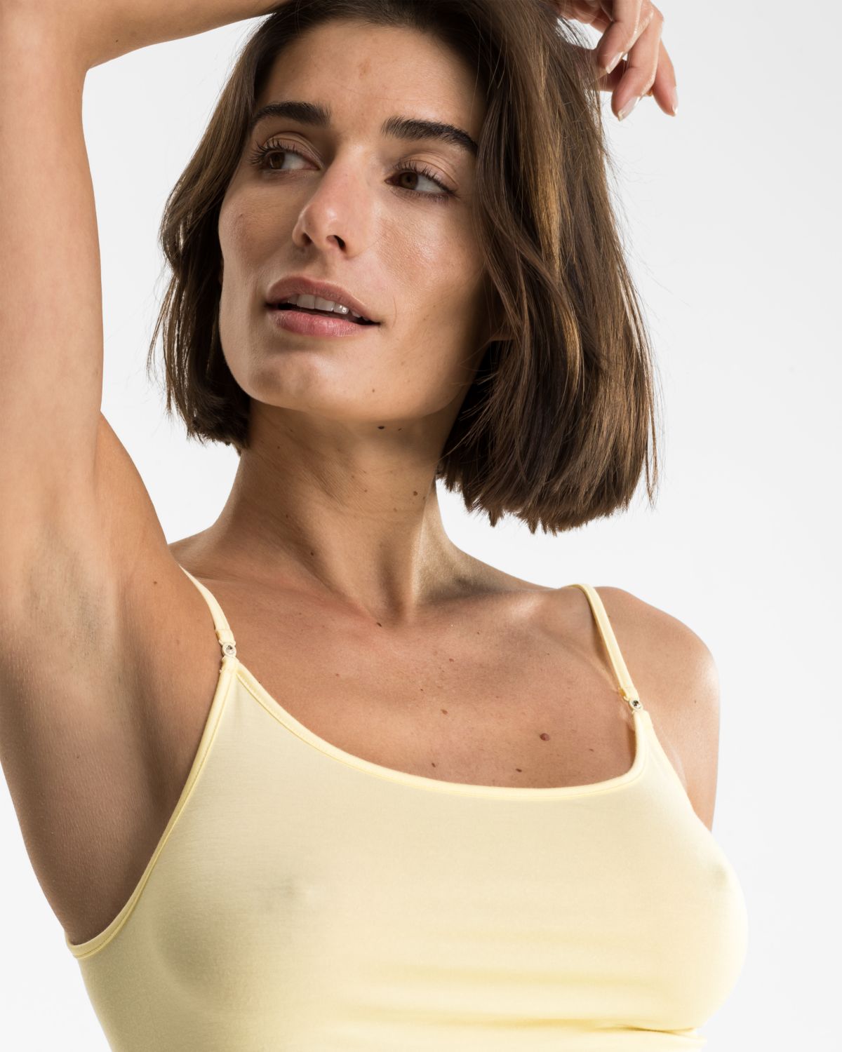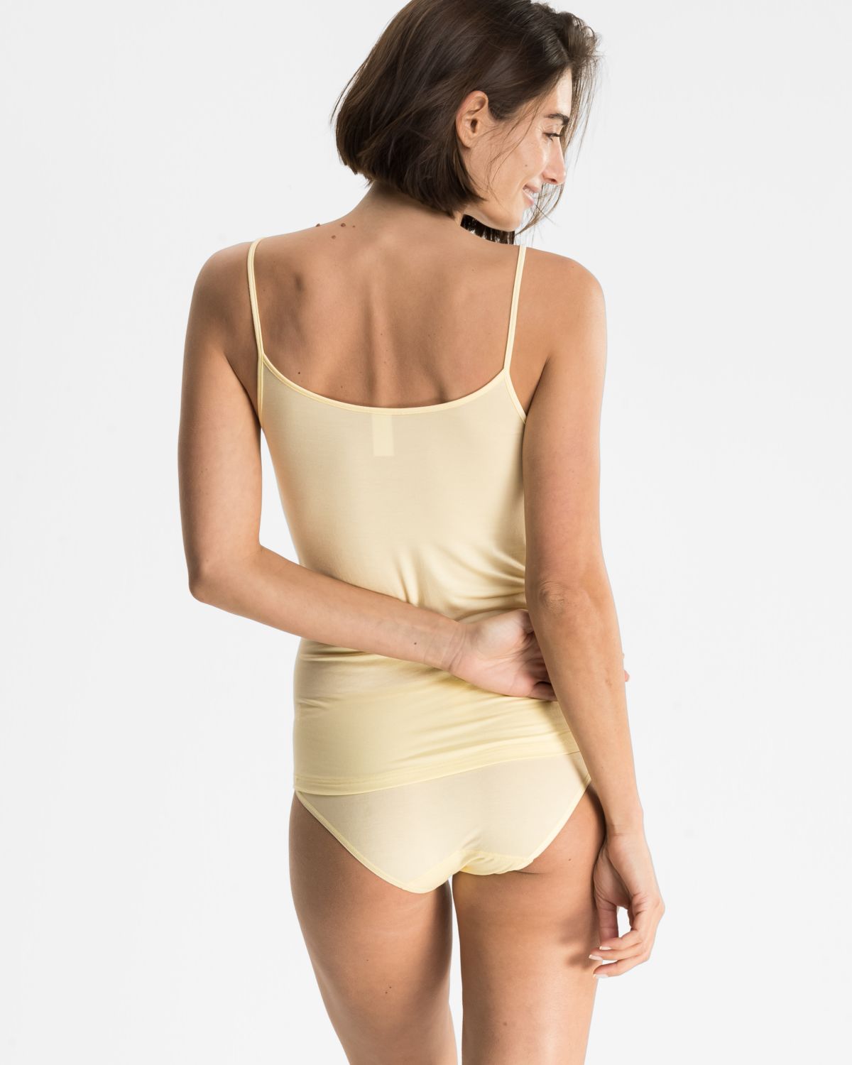 Achselhemd in zitrone aus der Serie Sensuelle, flach auf einer Oberfläche liegend.