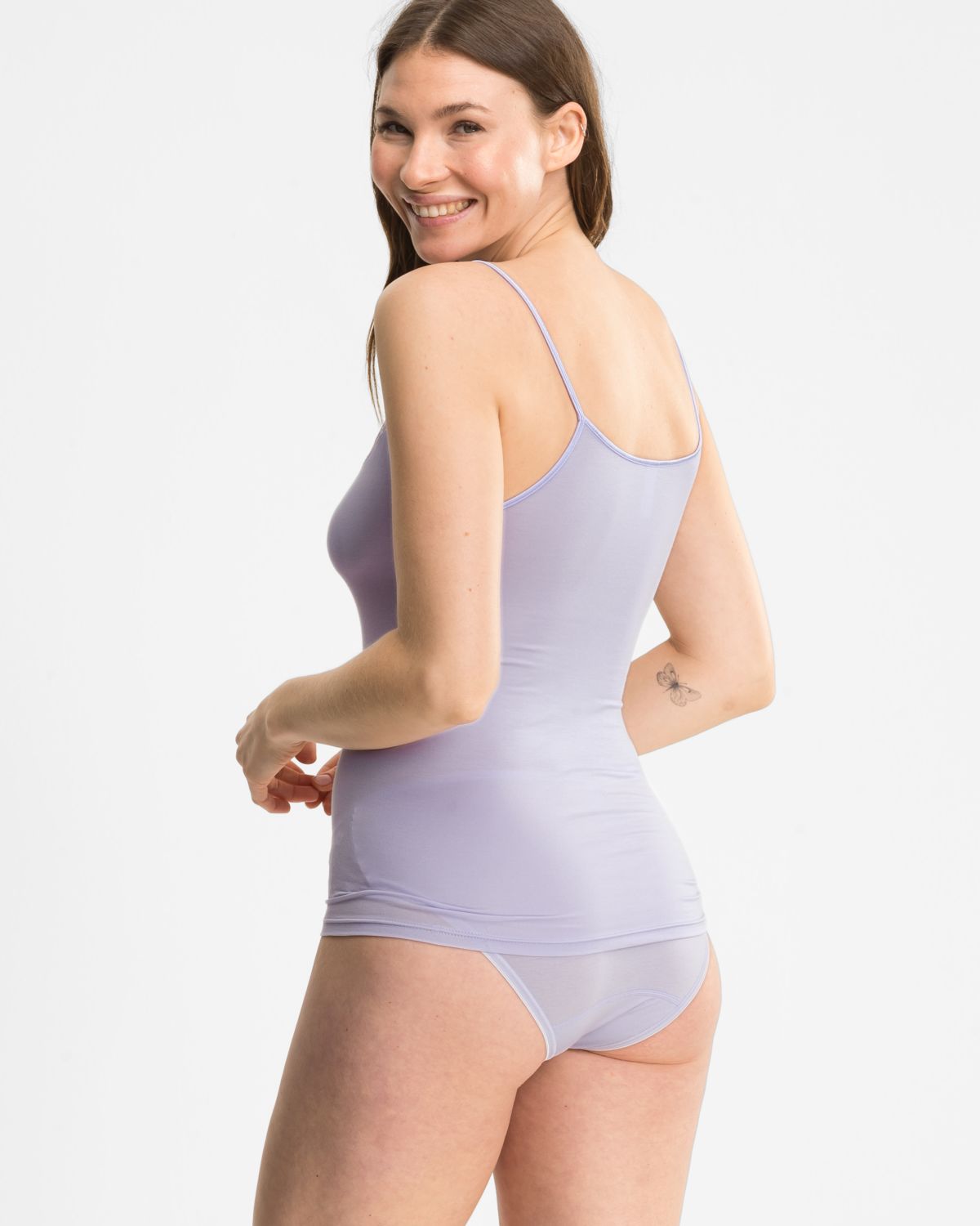Trägerhemd in blue aus der Serie Softfeeling, flach auf einer Oberfläche liegend.