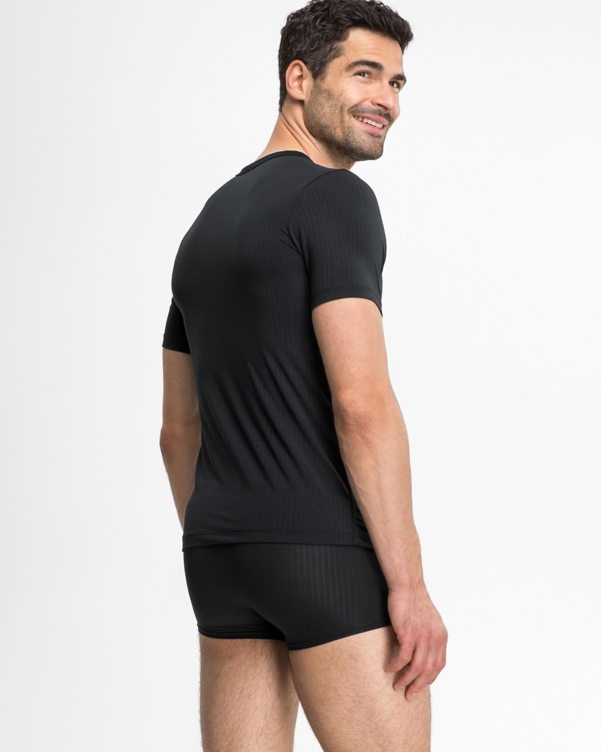 Herren Achselhemd in schwarz aus der Serie Classic, flach auf einer Oberfläche liegend.