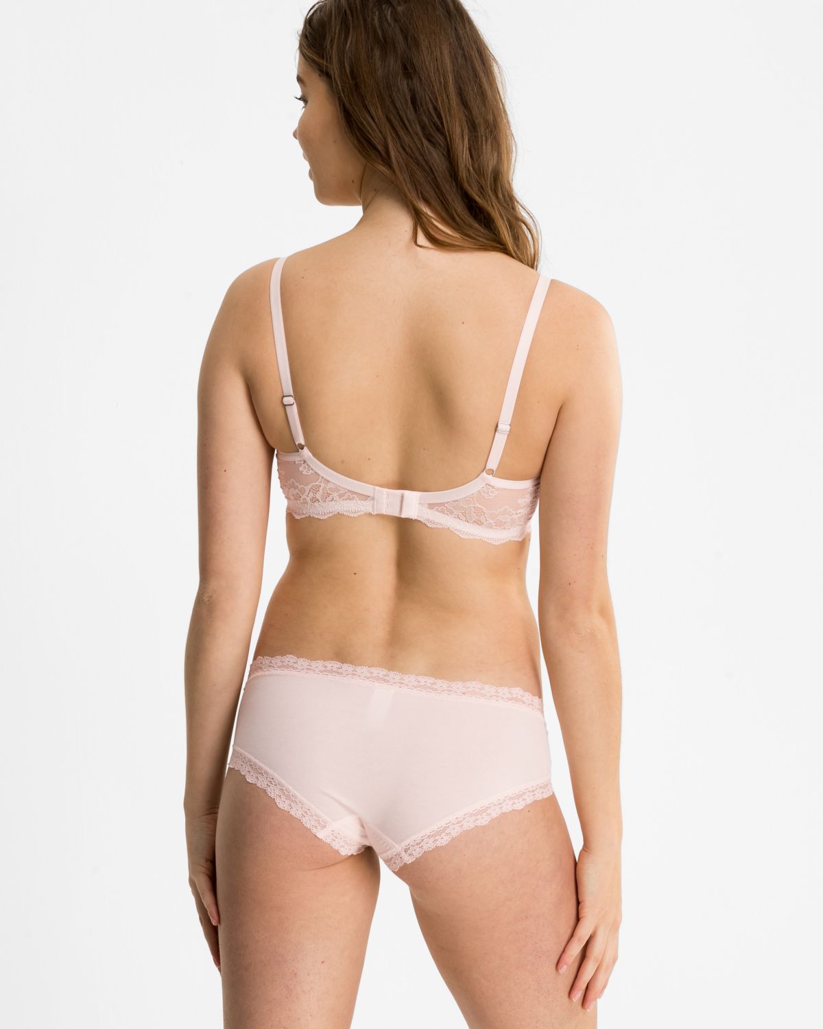 Bralette in lychee aus der Serie Lacy, flach auf einer Oberfläche liegend.