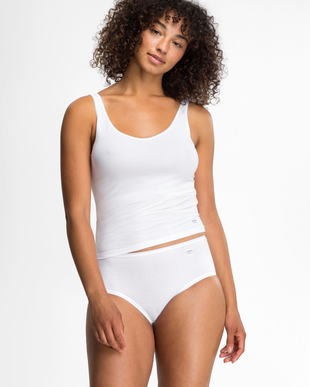 Minislip in weiß aus der Serie Softfeeling, flach auf einer Oberfläche liegend.