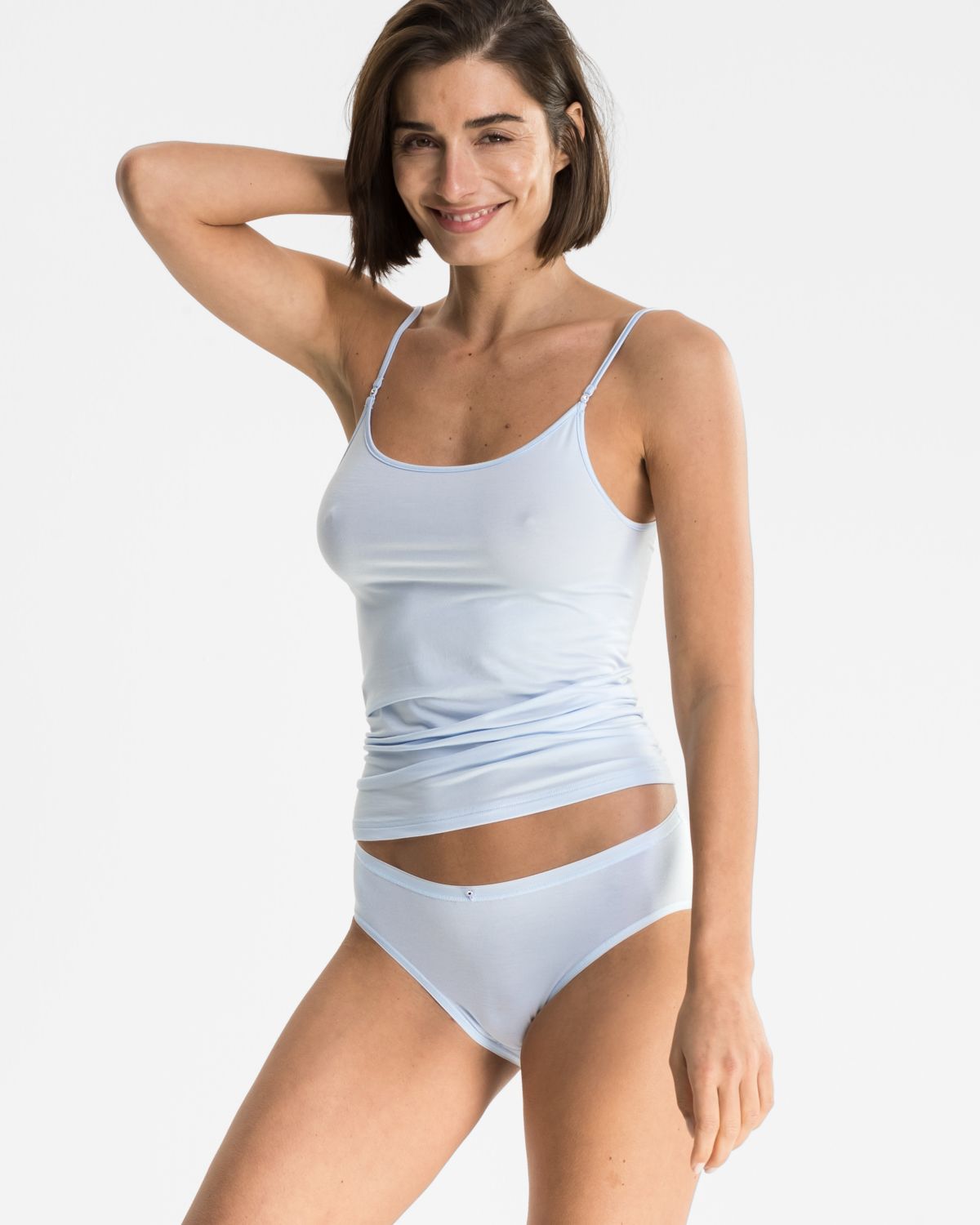 Achselhemd in aquamarin aus der Serie Sensuelle, flach auf einer Oberfläche liegend.