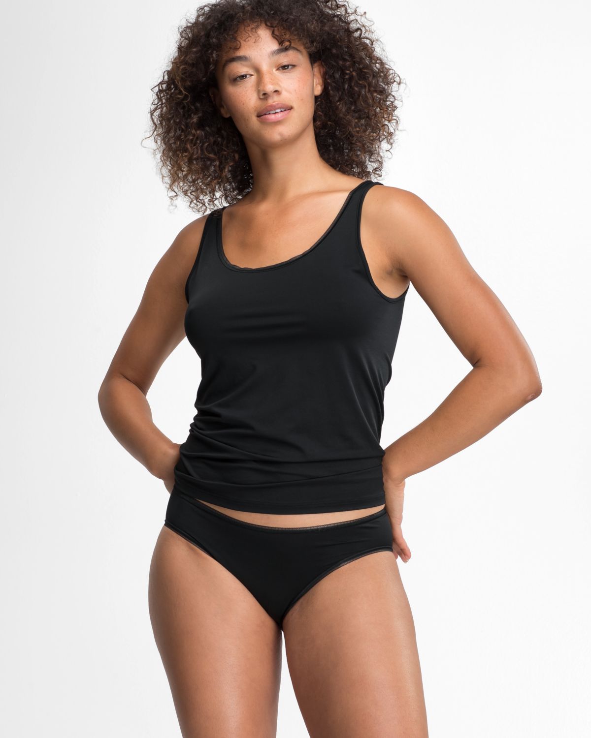 Mit flachen Transparentabschlüssen ist die Serie ein echter Hingucker, der auch unter körpernaher Kleidung unsichtbar bleibt. Der Materialmix ist pflegeleicht und schnell trocknend.
