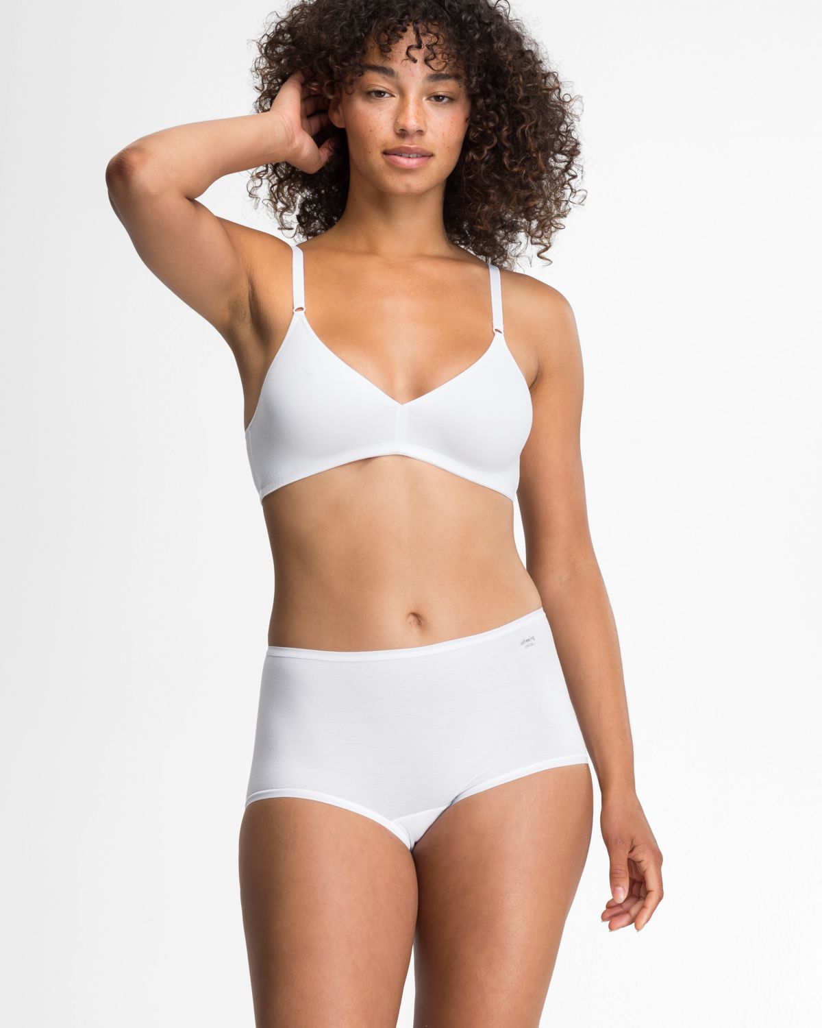 Minislip in weiß aus der Serie Softfeeling, flach auf einer Oberfläche liegend.