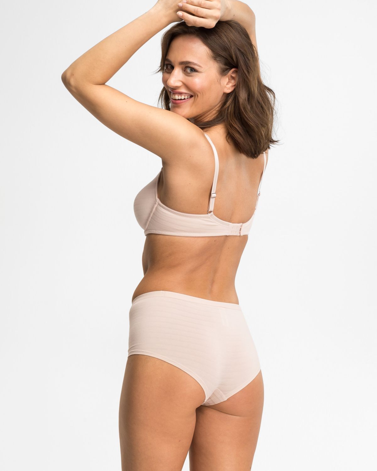 Schalen BH mit Bügel in lychee mélé aus der Serie Ruby, flach auf einer Oberfläche liegend.