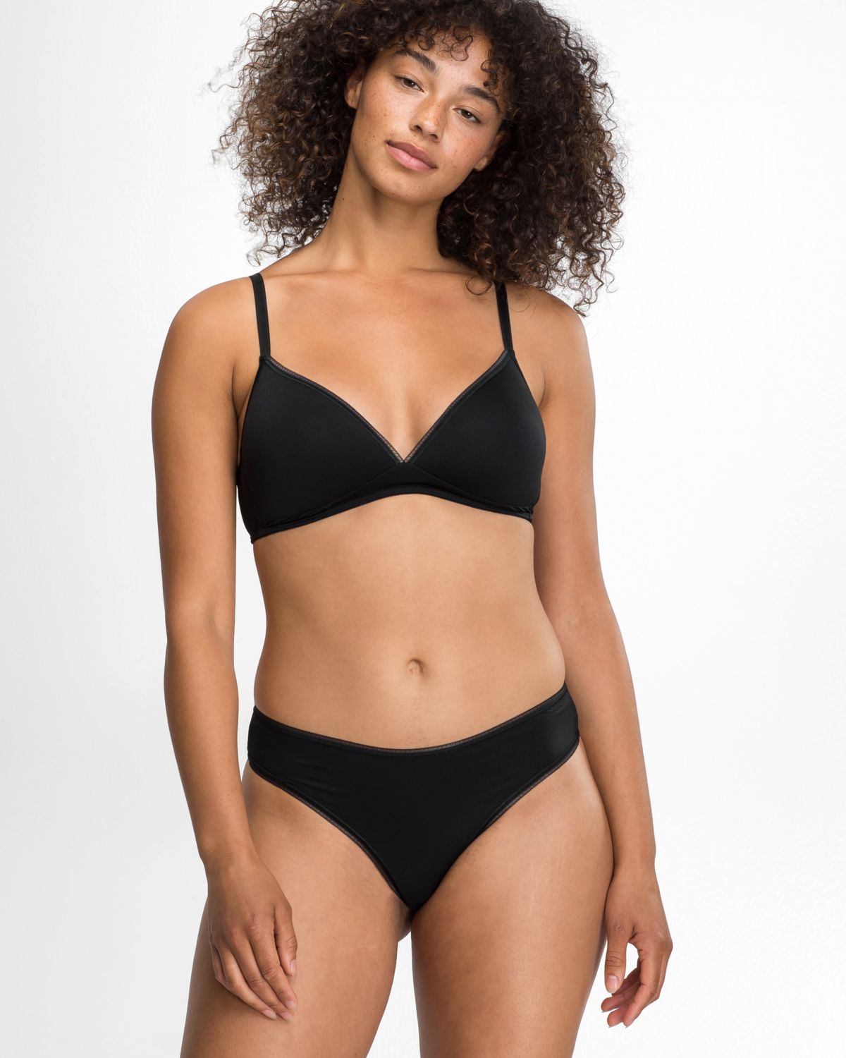 Mit flachen Transparentabschlüssen ist die Serie ein echter Hingucker, der auch unter körpernaher Kleidung unsichtbar bleibt. Der Materialmix ist pflegeleicht und schnell trocknend.
